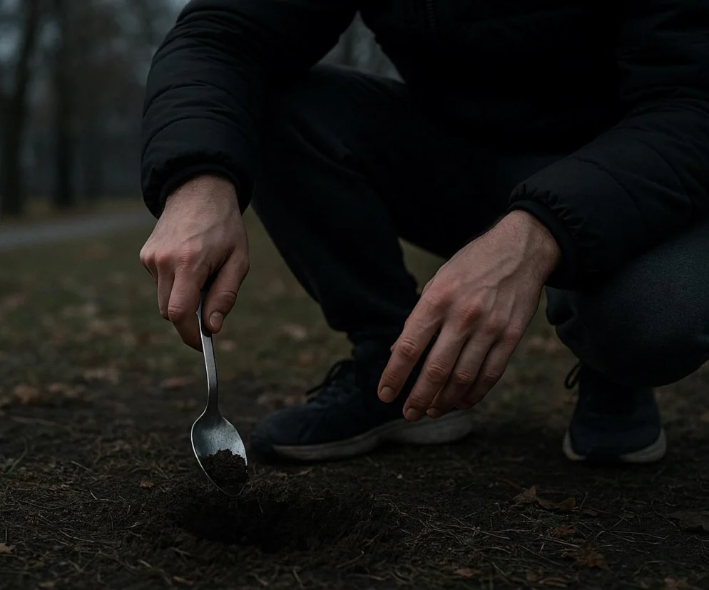 „Facet był dziwny, pojawił się znikąd, był zdenerwowany, mówił coś pod nosem. Wyjął łyżkę i kopał, robił zdjęcia dołka, pisał do kogoś na telefonie. (…) Znalazł chyba, co chciał, bo tylko dołek rozkopany zostawił”.
