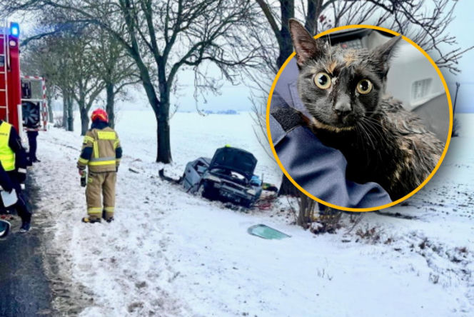 Policjanci uratowali kota z wypadku